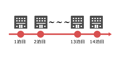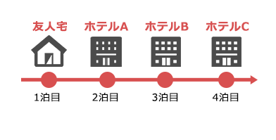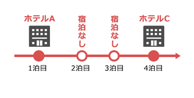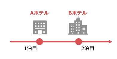 1泊ごとにホテルを変更する場合は、こちらのページにて2泊目以降のホテルを選択して追加します。