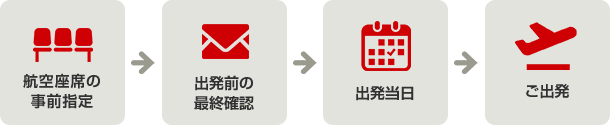 旅は移動も楽しみのひとつ。事前に航空便の座席指定をお済ませいただくと、空港でチェックインをせずに保安検査場へ直行いただけます。