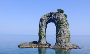 北海道の南西端にある海の幸が宝庫で手つかずの自然が残る島。海岸線にある奇岩「鍋釣岩」がシンボル。島の中央部には球島山あり、大パノラマを望むことができる。透明度抜群でマリンスポーツや温泉が楽しめる。