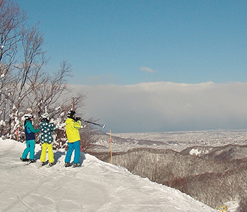 サホロリゾートスキー場の山頂の晴れた日は十勝平野と十勝連峰、日高山脈を一望できます。北斜面の非圧雪ゾーンでは自然のままのゲレンデを楽しめます。気温が低く水分が少ないサホロパウダーを体験。