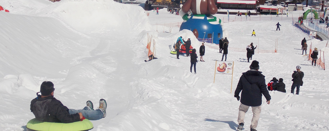 雪山デビューはここから!そり・チューブ・スノーストライダーなど雪遊びアイテムが使い放題!スノーエスカレーターで楽々移動。