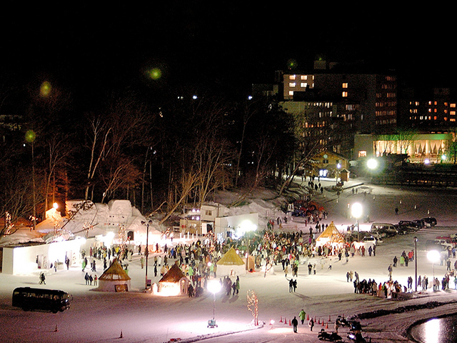 会場の阿寒湖では、1月下旬ごろ〜3月の間、あいすランド阿寒があります。あいすランド阿寒は、結氷した阿寒湖の上ならではの遊びを満喫できる冬限定のレジャーランドです。スノーモービル、バナナボート、ワカサギ釣りなど楽しいアトラクションがいっぱいです。(有料)