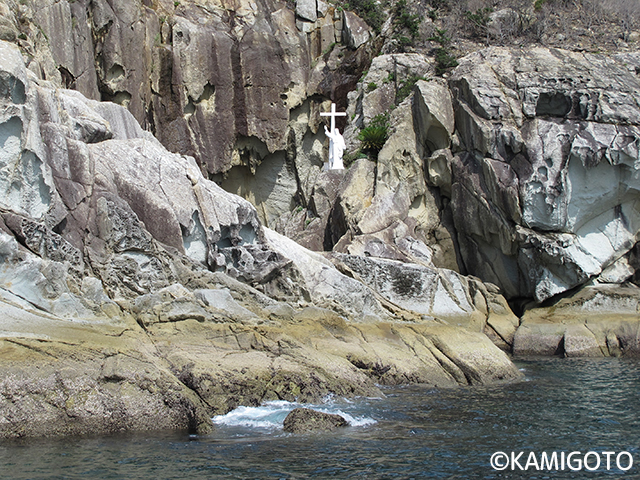 奥行52m・幅5mのドーム型洞窟で、海岸からは入口が見えない。厳しい弾圧から逃れるためにキリシタン信徒が隠れ棲んでいたが、発見され処罰された遺跡。洞窟の入口に十字架と3mのキリスト像がある。年に1回、11月にこの地でミサが捧げられる。