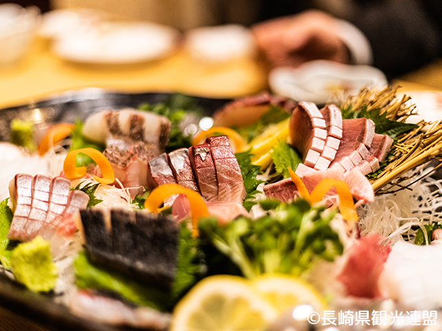 五島列島で水揚げされる鮮魚は特に別格と言われるほど優れています。名物「きびなご」やブランドアジ「ごんあじ」など鮮度が命のお刺身は本場ならではの楽しみ!最高級と言われる新鮮なクロマグロもお手頃価格で楽しめます。