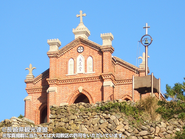 西日本で唯一、全国的にも極めて珍しい石造りの教会。1軒をのぞき皆キリシタンだったという頭ヶ島では、明治元年に起こった日本の歴史で最後のキリシタン弾圧「五島崩れ」のとき、信徒は牢から全員逃げ出して島を離れ、迫害が終わってからこの地に戻ってきた。島内で切り出した石を積み上げて建設され、その外観は重厚感にあふれ風格さえ感じる。