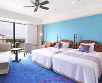 南国の太陽の光をテーマにした2つのデザインの客室をご用意(指定不可)各ウイングの5階以上のお部屋になります。
