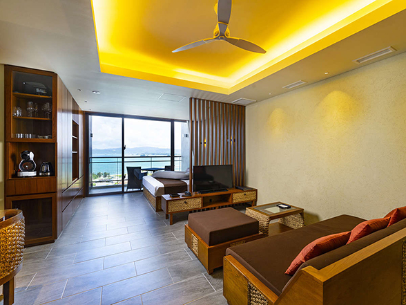 キッチン付きホテルのなかには、料理を作って泊まるだけではなく、キラキラ光る青い海が見えるテラスを備えた客室やリゾート気分を盛り上げるプール、極上グルメが味わえるレストラン・バーなどの付帯施設も充実し、憧れの沖縄バカンスを存分に楽しめる本格的なリゾートホテルも多いのが沖縄の特徴。自炊して旅費を抑えたい方向けのリーズナブルなコンドミニアムからリビングと寝室が分かれたスイートタイプの贅沢なリゾートホテルなど、あなたの希望にあったホテルがきっとあります。