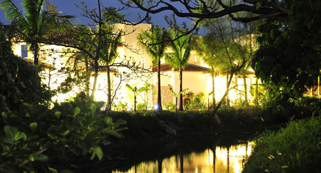 石垣リゾートグランヴィリオホテルは、石垣島の豊かな自然に溶け込む景観に細やかな配慮を施したホテルです。山の稜線を壊さないように、建物の低層化をはかり屋根は県産の瓦で葺いたことで島の自然と伝統を感じていただけます。ロビー、客室前の水盤は目前の海と一体化し、ゆったりとした非日常的な時間をお楽しみいただけます
