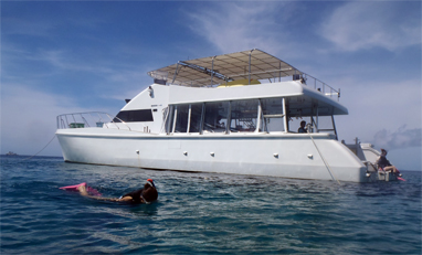 カタマラン船なので揺れに強い。お子様やご年配の方も快適です。