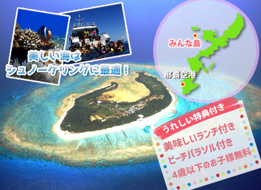 沖縄本島北部、ちゅら海水族館へ行く途中にある本部港より船で15分の有人島。美しいビーチが有名です。