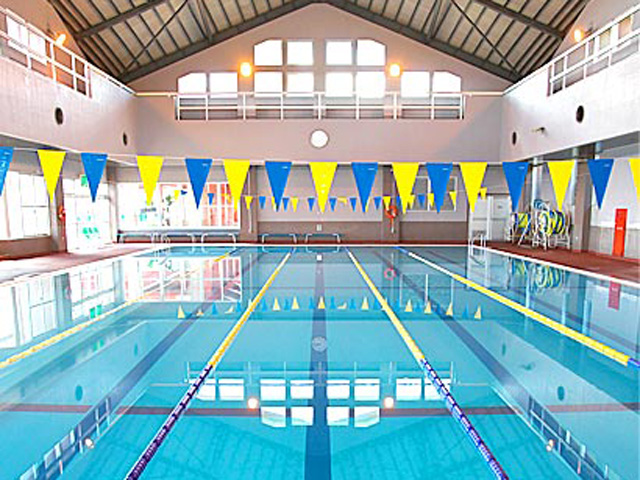ウォータースライダー付の野外プールやフィットネスジム等