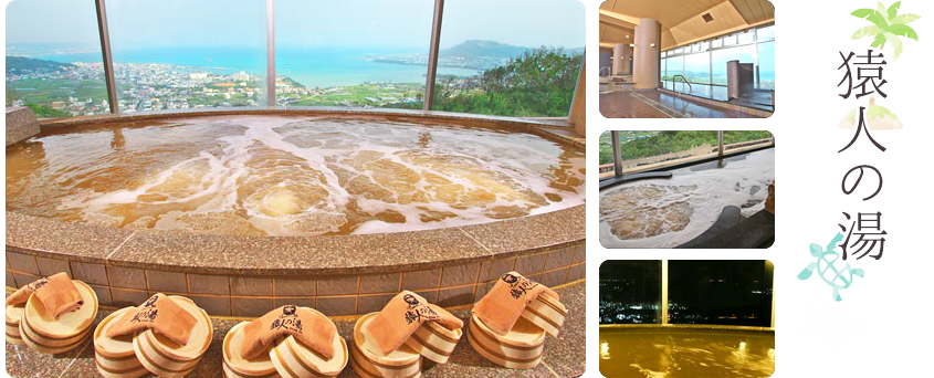 ろ過・加温・加水を一切していない自然の恵みそのままの源泉かけ流し。眺望抜群で昼は青い空と海、夜は南城市の夜景と星空を楽しめる眺望抜群の展望風呂です。