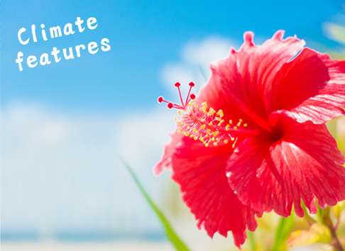 沖縄の気候は、本州とは大きく異なり、1年を通して温暖なすごしやすい気候ですが、それぞれ季節に特色があります。1年で最も寒いのは12~2月です。北風が吹く日が続いたり、小雨が降れば体感温度は実際の表示温度よりも肌寒く感じられます。3月になると気温も上がり、北風から南寄りの風に変わるとともに、日差しも強まります。例年、ゴールデンウイークを過ぎると梅雨入りし、期間中は1日の中でも雨がシトシトと降り続くというわけではなく、降ったり、やんだり、晴れたりと天気が変わりやすいです。6月下旬頃に梅雨明けし、その後は気温がグッと上がり、本格的な夏日が続きます。1年の中でも最も紫外線が強い7~9月は、直射日光が肌に突き刺すようで痛いと感じるほど。紫外線対策、熱中症対策を適切に行ってください。台風がなければ天候は安定していますが、7月~10月は台風が近づきやすくなります。勢力が強いまま接近し、動きが遅く長期間台風の影響がでることもあるので天気予報をこまめにチェックし注意が必要です。