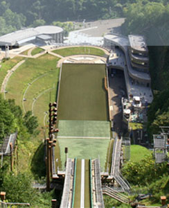 世界に誇るジャンプ台、ペアリフトで標高307mの展望台へ。