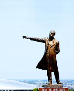 大都市・札幌にありながら、広大な牧草地に草を食む羊たちの群れを眺める北海道らしい牧歌的な風景と、眼下に石狩平野を眺める景勝地です。