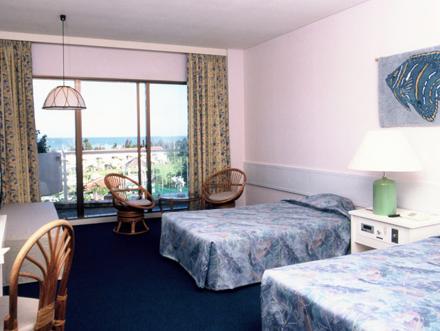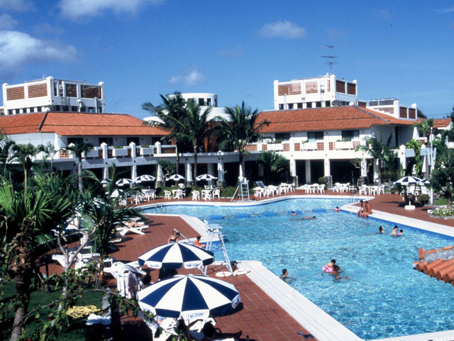 200室の客室と広いガーデンが有り 白い建物に赤い屋根が特徴のリゾート感溢れるホテル。 イーフビーチまですぐ。