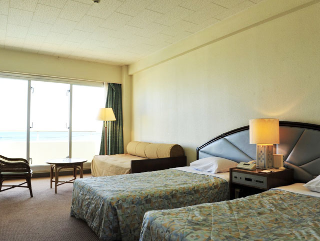 ホテルの目の前は「日本の渚百選」イーフビーチ!! オーシャンビュールームはエメラルドグリーンの海と 真っ白なビーチが窓一杯に広がっています