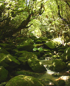 苔むした岩や大木と清流が流れる最も屋久島らしい森を抜け辻峠を越えると、森が開け突然目の前に大パノラマの絶景が広がる太鼓岩に辿りつきます。この一枚岩の上で過ごす時間は、まるで時間が止まったように感じられます。