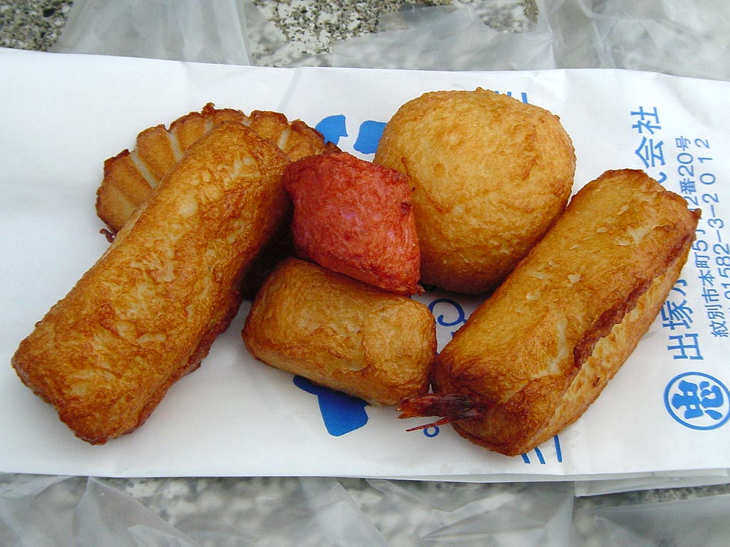 天ぷらといえば「揚げかま(揚げたかまぼこ)」スケトウダラをつかった練り物に蟹やホタテなどの具が入っている網走のローカルフード。