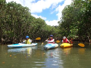 住用町黒潮の森マングローブパーク日本で2番目に広大なマングローブの森。この原生林のジャングルをなんとカヌーでツーリングできます。網の目のように入り組んだ水路を、カヌーを操って探検家気分で分け入れば、笑顔いっぱい気分は爽快!ガイドさんの説明も楽しい。カヌーは安定性が高く初心者でもOK。- 住所