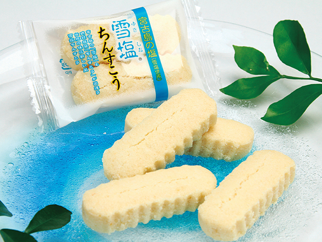 沖縄土産の定番中の定番。宮古島の「雪塩」が伝統的な甘みを引き立てる、サクッと軽やかな食感と絶妙なあまじょっぱさが癖になる沖縄土産の決定版。