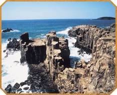 - 東尋坊 荒々しい岩肌の柱状節理が延々と1kmに渡って続く勇壮そのものの東尋坊は、国の名勝・天然記念物に指定されています。高さが20メートル以上に及ぶの断崖は壮絶で、日本海の荒波が打ち寄せる姿は大迫力。