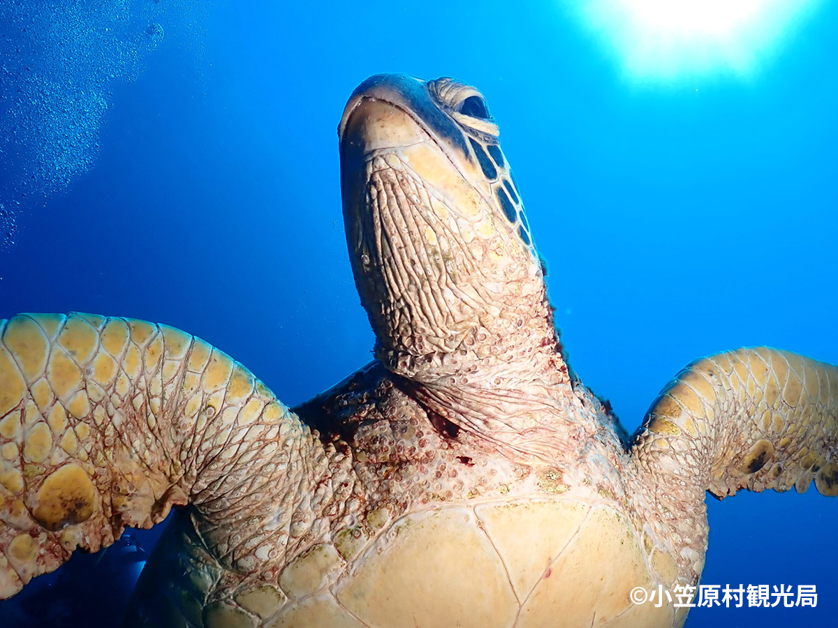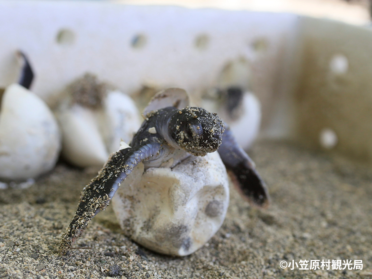 小笠原諸島は日本で最大級のアオウミガメの繁殖地です。6~7月頃に産卵、8~9月頃に孵化します。船上からやシュノーケルリングでも出会えるかもしれません。