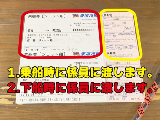 ちなみに、左側の乗船券は下船時に必要になるので、なくさないようにしっかり保管を。