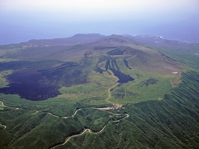 山頂口の展望台からは外輪山の雄大な景観や、天気が良ければ伊豆半島や富士山まで望むことができます。