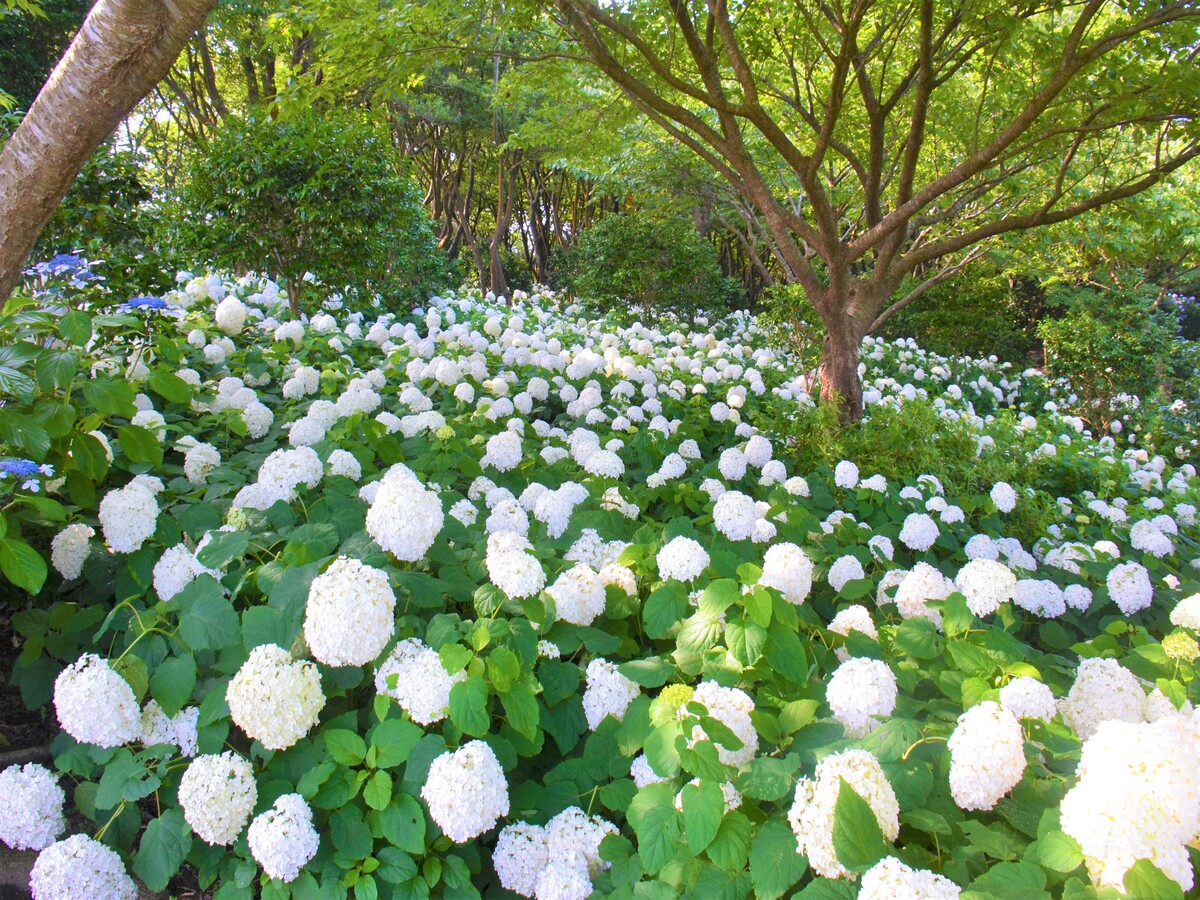 椿花ガーデンで色とりどりのあじさいを楽しめます。