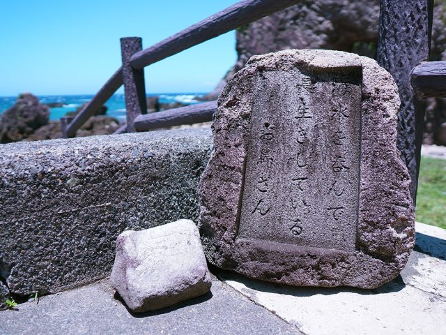 海岸には、「大浦の馬の首」と呼ばれる奇岩があります。この岩は、馬が海の水を飲んでいるように見えることからその名が付けられ、訪れる人々の目を引きます。