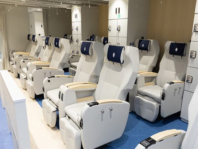 長時間の移動でも快適に過ごせる、リクライニングシートタイプの椅子席。