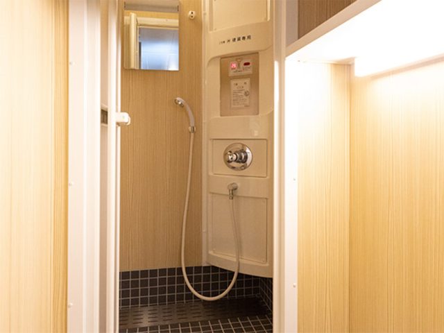 シャワー・ウォシュレットトイレ完備、各席コンセント付きで、設備面もバッチリ。