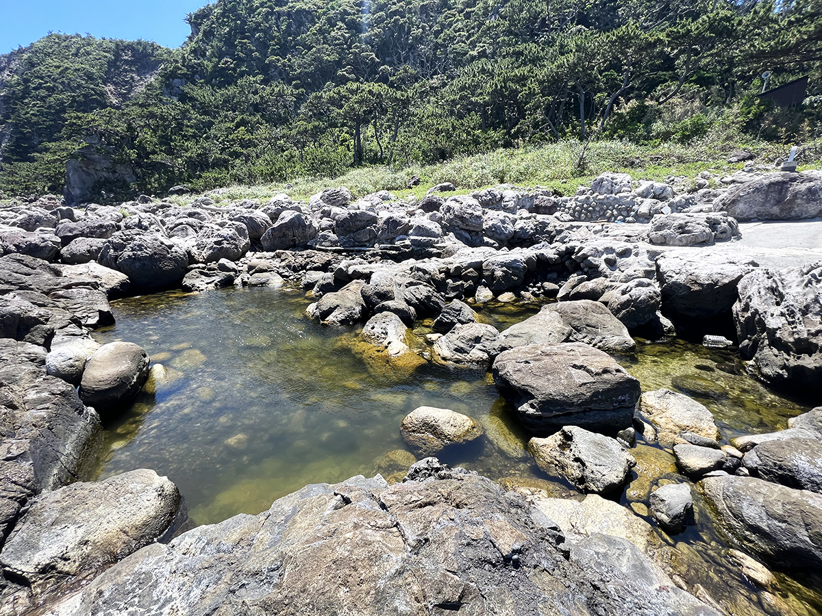 潮が引くと温泉が姿をあらわし、ちょうどよい温度の湯が岩のくぼみに溜まります。満潮時は海水がかぶってしまうため、入浴できないこともあります。