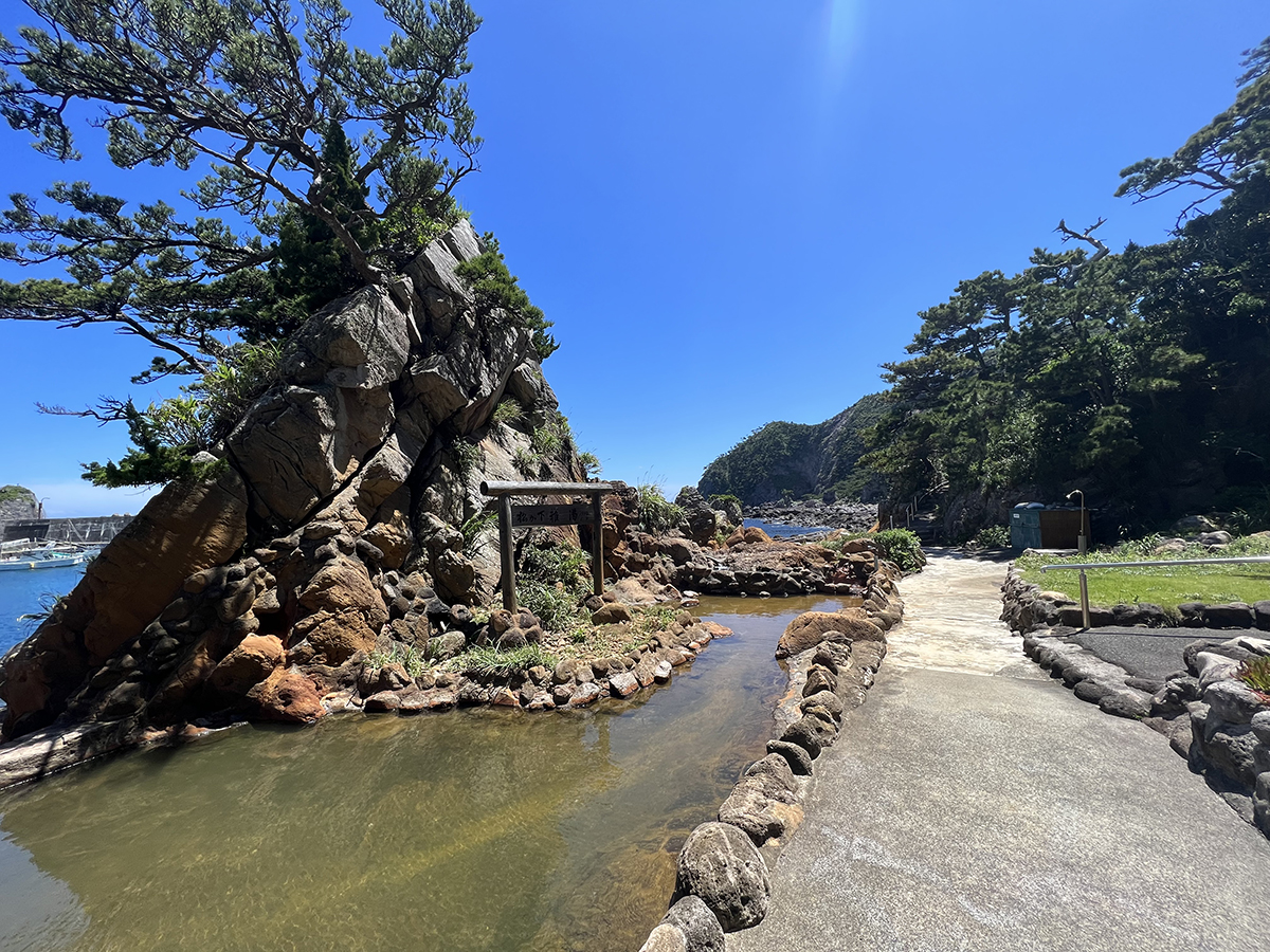 式根島の港からほど近い場所にひっそりと湧き出す、海辺の天然温泉「足付温泉(あしつきおんせん)」。
