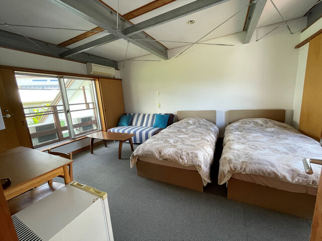 扇浦海岸まで徒歩3分。全室バス・トイレ付の洋室ツインタイプ。
