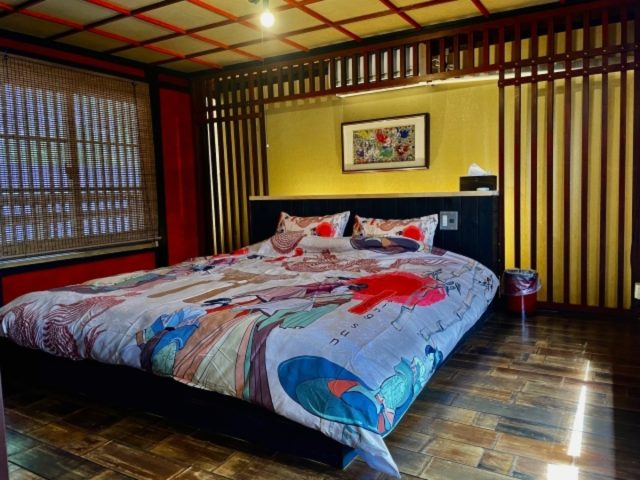 重厚感のある調度品とともに、キングサイズのベッドがゆったりと据えられ、まるで殿様になったような気分でおくつろぎいただけます。