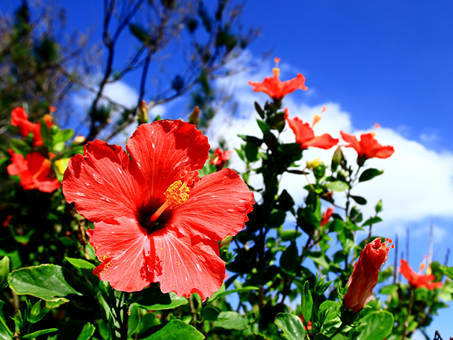 海遊びやダイビングにぴったりの季節。ウミガメや回遊魚にも出会いやすく、マリンレジャーが本格化。7~8月は南国のような陽射しに包まれ、夏休み旅行で大型客船の旅も人気です。