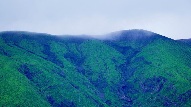 島の中央にそびえる活火山・雄山は、度重なる噴火によって独特の風景を生み出しました。「火山体験遊歩道」では、溶岩や火山ガスの跡が残る大地を歩きながら、地球のエネルギーを肌で感じることができます。