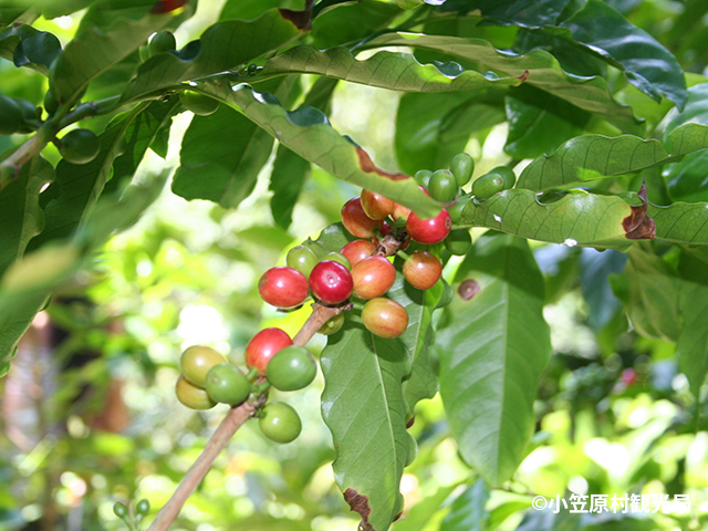 明治の初期に熱帯植物の試験栽培として他の植物と共に導入されたコーヒーの木。幾多の困難な歴史を乗り越え現在でもごく少量ですが生産されています。