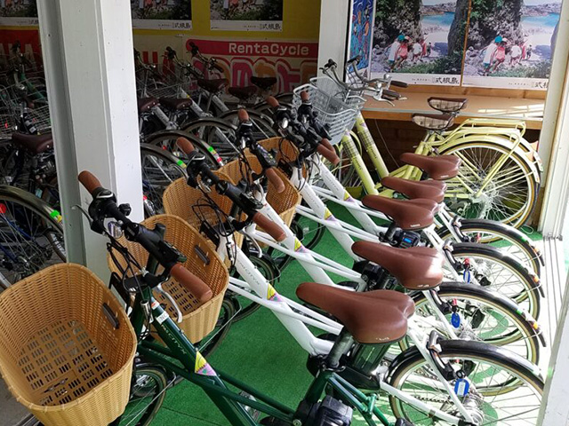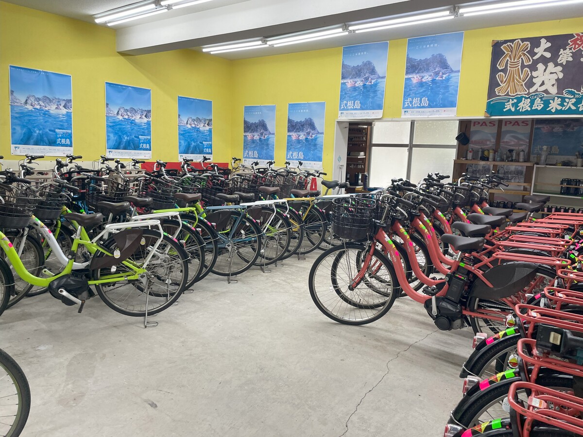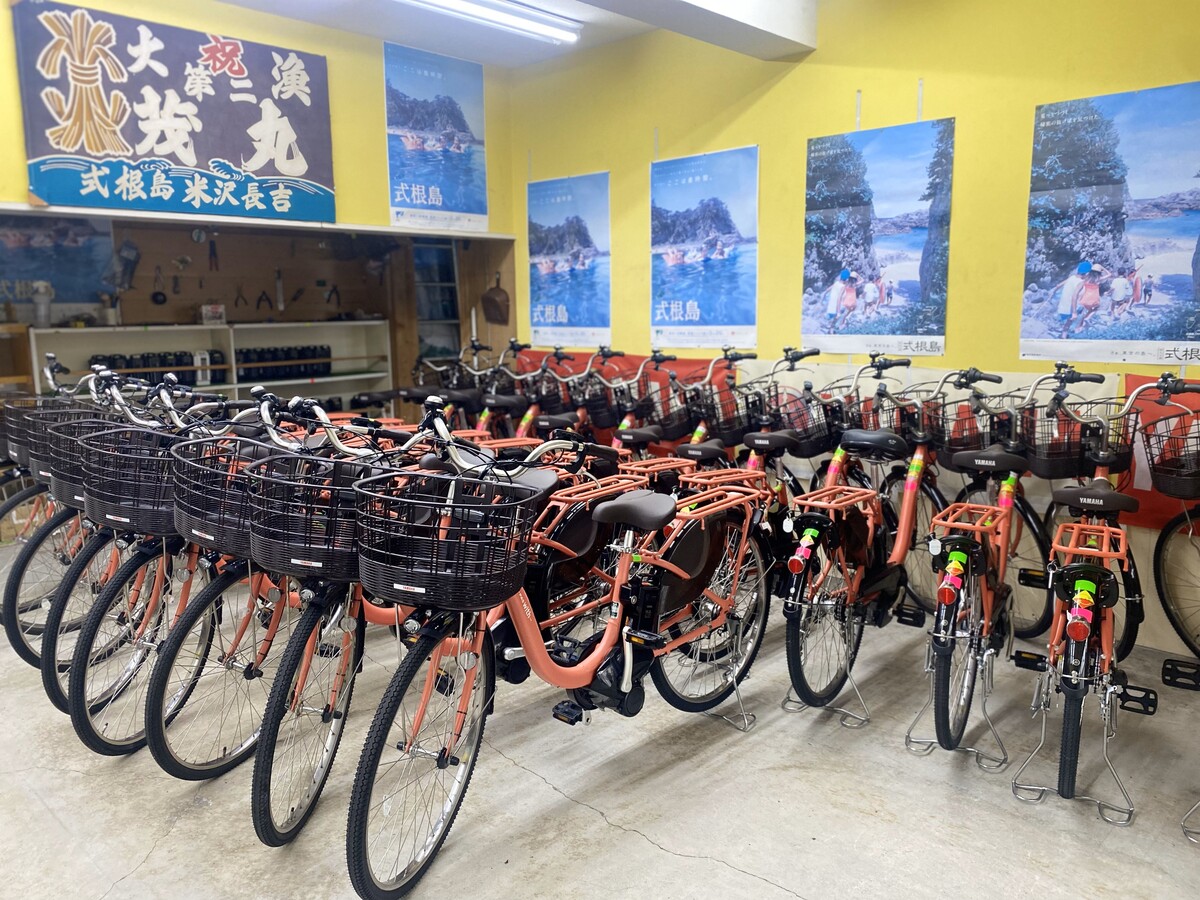式根島は1周約12kmなので、観光するなら電動アシスト自転車がとっても便利♪アップダウンが多い道も楽々移動できます。