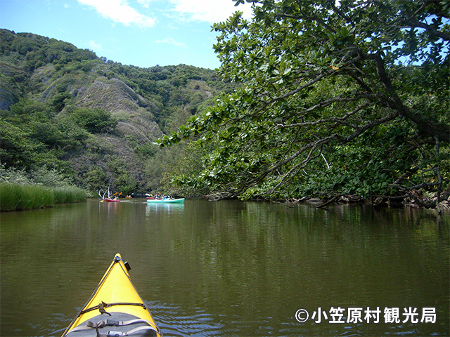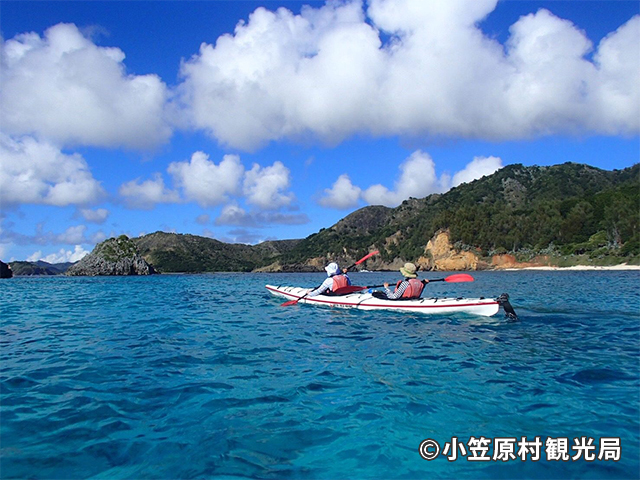 人力で進むシーカヤックは自然に優しいツアーです。シーカヤックでしかいけないビーチの上陸は、冒険そのもの!透明度の高い小笠原の海では、カヤックの上から海中の生き物たちを観察できます。初心者の方も自分のペースでゆっくり楽しめるのでオススメです。