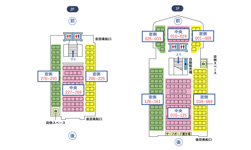 ご乗船前にお座席のご確認をお願いいたします。※船内は全席指定席です