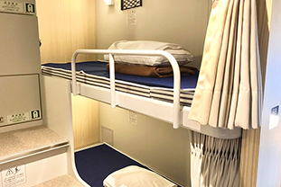 船内にはレストラン、自販機コーナー、コインシャワー、キッズルームなどがあります。