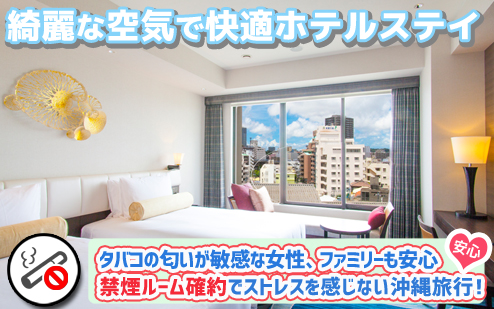 ※沖縄本島に前泊又は後泊するプランの注意点・・・沖縄本島の宿泊先は禁煙ルームではない施設もございます。