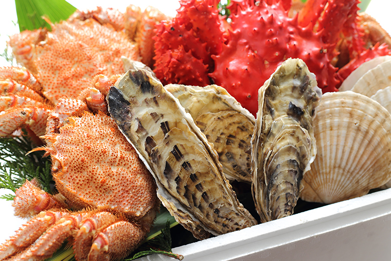 カニ(タラバガニ、毛ガニ、ズワイガニ)や牡蠣、タラなどが旬。