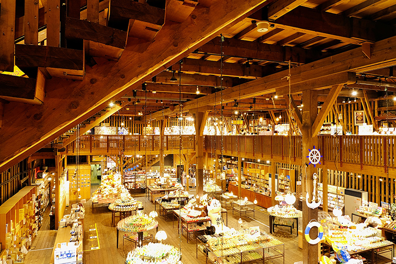 小樽ガラスの代名詞とも言える老舗。明治時代の漁業用倉庫を利用した店内には、和・洋・カントリーなどテーマごとのガラス製品が並びます。絶対に訪れたいのが「北一ホール」。167個の石油ランプだけが灯る喫茶ホールで、揺らめく炎を眺めながらコーヒーやスイーツを楽しむ時間は、小樽旅のハイライトになるでしょう。