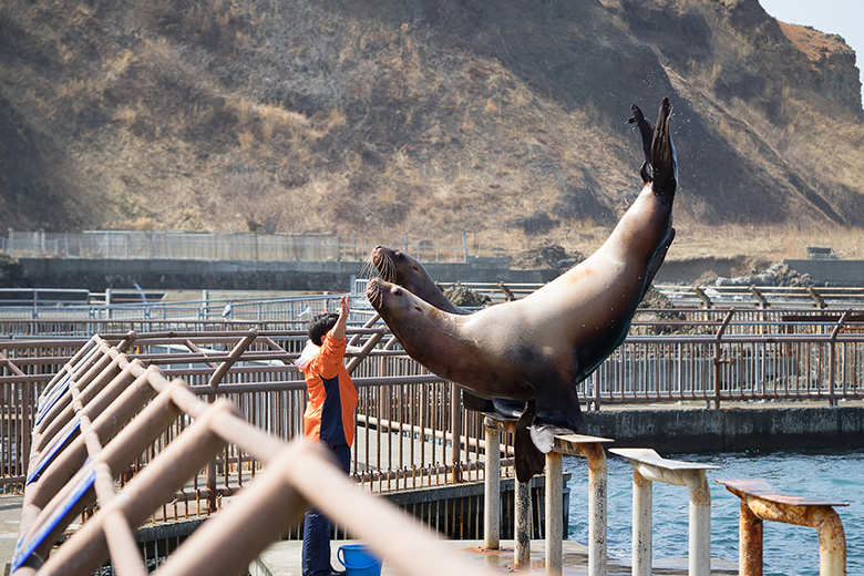 大自然に囲まれた、海沿いにある水族館。海を仕切っただけの豪快な「海獣公園」では、アザラシやトドが暮らす野生に近い姿を観察できます。人気はペンギンたちが園内を散歩する「ペンギンの海まで遠足」(季節限定)。予想外の行動を見せる動物たちに、子供も大人も大爆笑間違いなしのスポットです。