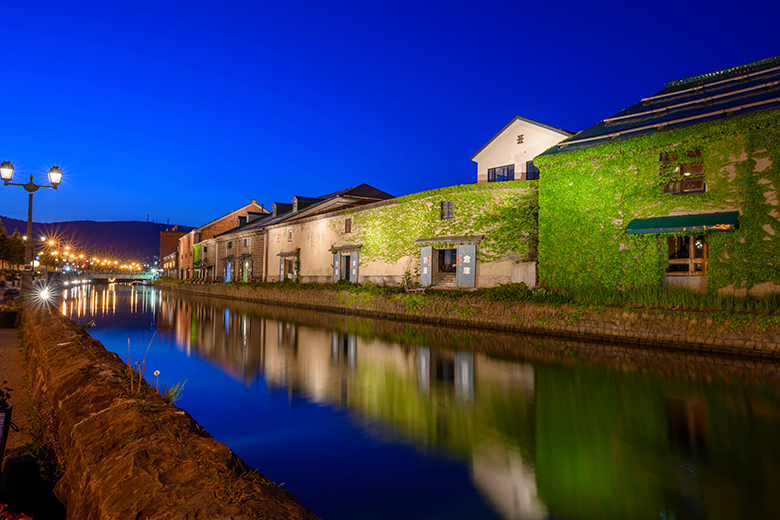大正時代に建設された水路で、小樽のシンボル的存在。石造りの倉庫群が水面に映り込む風景は、いつ訪れても絵になります。昼間の散策も気持ちが良いですが、ガス灯が灯る夕暮れ時から夜にかけての幻想的な雰囲気は格別。運河沿いの散策路は石畳が整備されており、写真撮影に最適です。