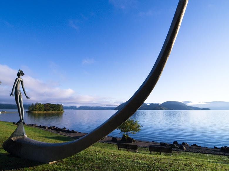 洞爺湖の湖畔沿いに、58基もの彫刻アートが点在する野外美術館。湖と緑、そしてアートが調和した風景は美しく、一人で静かに散策するのにぴったりです。気に入った彫刻の前で足を止め、湖風を感じながらぼんやり過ごす贅沢な時間が流れます。